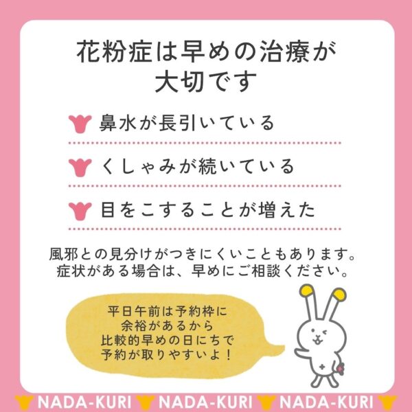【花粉症は早めの治療が大切です】